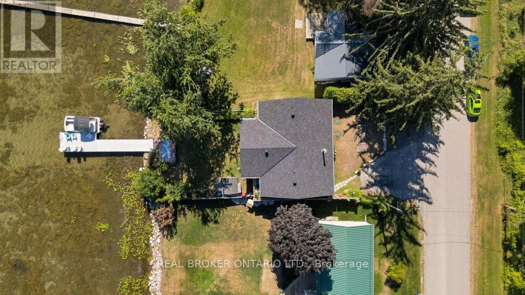 +"PublicRemarks": "Spectacular waterfront home minutes to Orillia on Lake Couchiching! With 5 car parking you will be impressed before you even step inside. The flat usable property is perfect for a game of horseshoes, a bonfire, growing your vegetables or relaxing after a day out on the boat. There is an upper balcony to take in the views, a lower screened in party room, a deck right at the waters edge and a 48-ft long composite dock perfect for all of your visiting friends. Once inside the carpet free home you will be impressed with the wood kitchen with stove facing the lake. Can you imagine cooking meals while taking in the tranquility of the lake?! The 4-piece guest bathroom is tucked away by one of the guest bedrooms with front den with crown moulding and keyless entry. The main open living, dining space with wood stove (2022) has hardwood flooring and crown moulding with views of the lake. Into the bonus sunroom through the French doors boasting cathedral ceilings, natural gas fireplace (2020), views for miles, and sliding door to the deck perfect for your morning coffee or to bbq in the evenings. The primary suite is in it's own wing of the house with Juliette sliding doors facing the lake, hardwood flooring, crown moulding, huge walk-in closet and 4-piece ensuite (2024) with quartz countertops, sauna (2024) and stand up shower with rain shower head. The lower walk-out level boasts a 3rd rec room, 3rd bedroom and laundry. 7 minutes to major box stores, 1 minute from Hwy 11. Septic bio-filter (2014), windows (2014) uv system (2022), waterproofing (2025), furnace (2012), electrical panel (2012), roof (2018), sunroom flooring (2020), sump pump (2025), jet pump (2019), owned hot water heater (2023), uv system (2023). (id:62650)"
