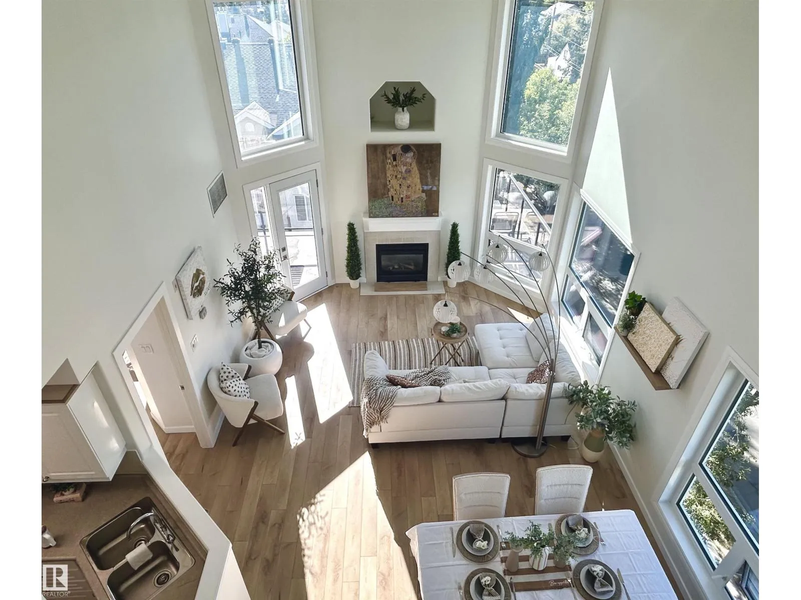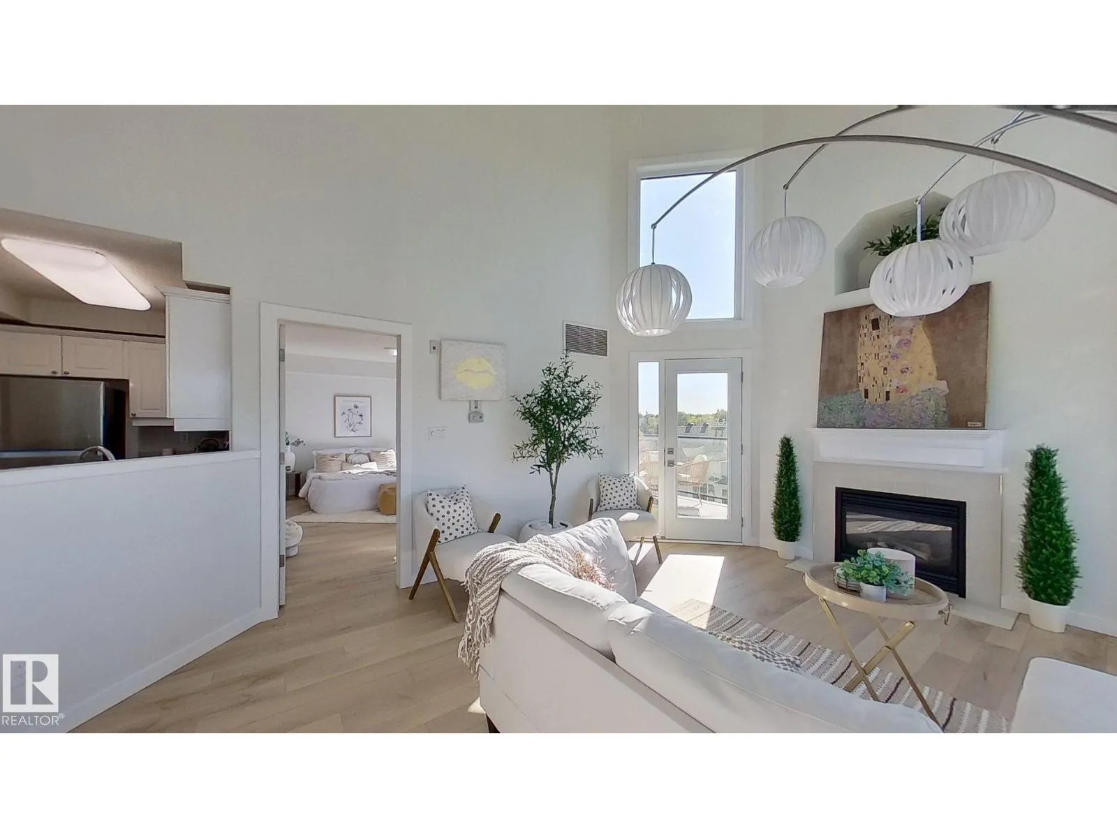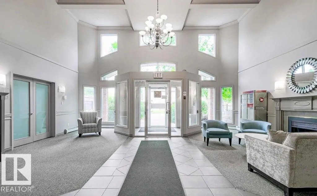Stunning 2-bedroom, 2-bathroom 1487 sq ft 2-story penthouse condo in the heart of Ritchie, where modern design meets executive living. With 20-foot vaulted ceilings, floor-to-ceiling windows, and endless natural light, this one-of-a-kind corner unit offers panoramic views of Edmonton’s river valley and downtown sk