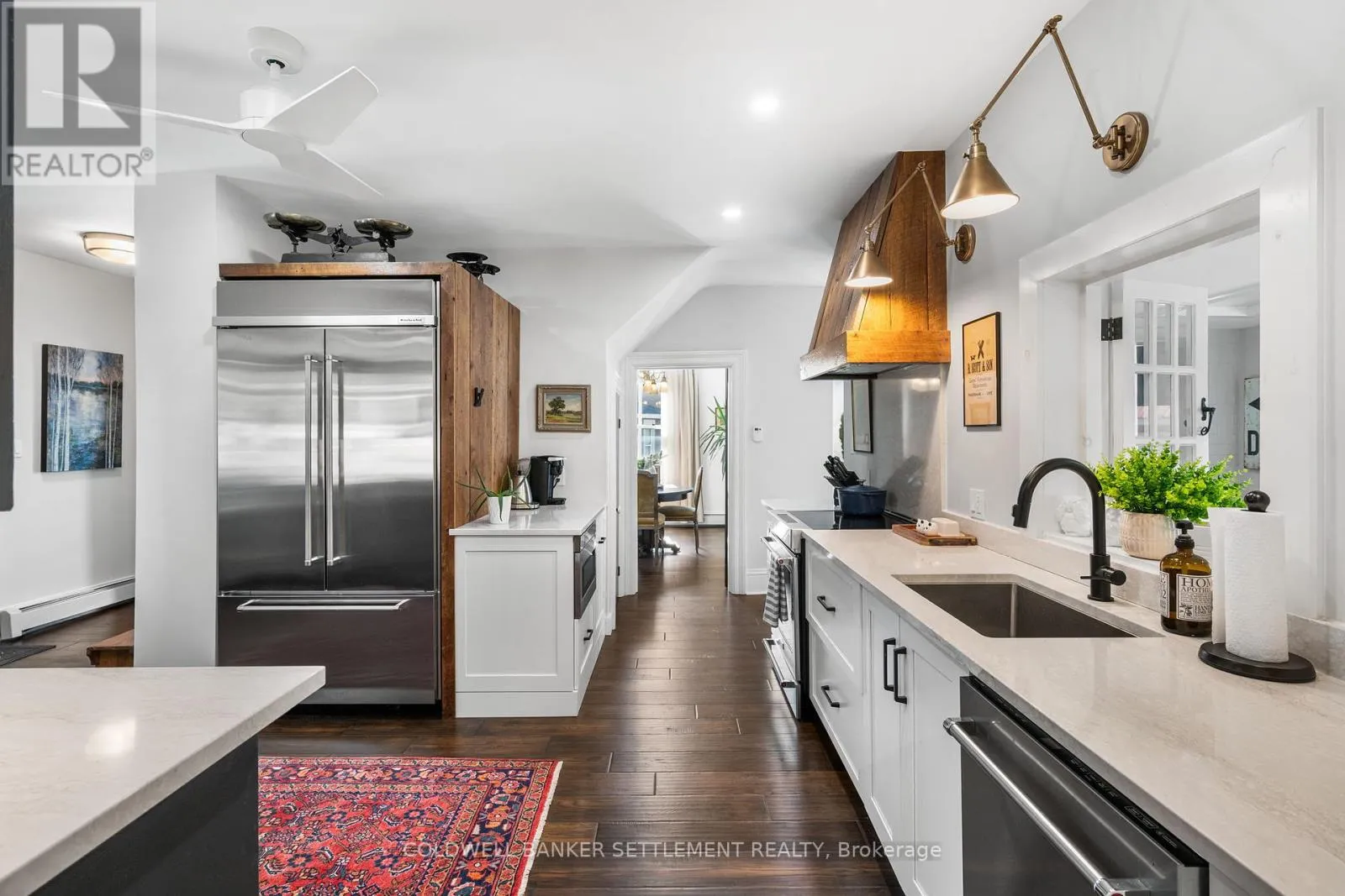 +"PublicRemarks": "This outstanding home built in 1900 is situated in the heart of Perth mere minutes walk to chic boutiques, fabulous restaurants, many with relaxing patios, coffee shops, parks, profesisonal services, etc. A radical restoration and renovation completed over almost two years transformed the ordinary into the extraordinary. It started with a "full gut renovation" and owner vision. The result after almost 2 years of work (2021-2023) is a home with a unique personality that is not only comfortable and beautiful, but utilitarian with great spaces for family and friends to gather but also have their privacy. Not too big, not too small - 4 spacious bedrooms, 2.5 baths, main floor laundry/mud room/sun room, formal living room with gas fireplace installed during renovation, dining room, family room, eat in kitchen. Talented craftspeople completed the vision of the owner blending vintage and new and adding custom touches like the stove hood fan made from wood found behind the walls, the custom made powder room vanity, 1920's dining room chandelier, the repurposed antique hutch re-styled for the new kitchen, the heirloom fireplace mantel remodelled to complement the history of the home, restored newel posts, antique hardware researched and added, etc. The bright kitchen was designed by Elite Kitchens to accommodate an oversize refrigerator, lots of lovely quartz counters providing space for more than one cook to prep, a special coffee centre, room to mingle. The engineered hardwood floor design carefully chosen to complement the age of the home. The foundation was underpinned, top quality steel shingled roof with heated line to prevent ice built up, custom windows and doors fitting of the era, updated wiring and plumbing, new boiler for gas fired radiant heat system, and more! Move in with confidence - it's practically a new house but distinctive, full of charm and character! (id:62650)"