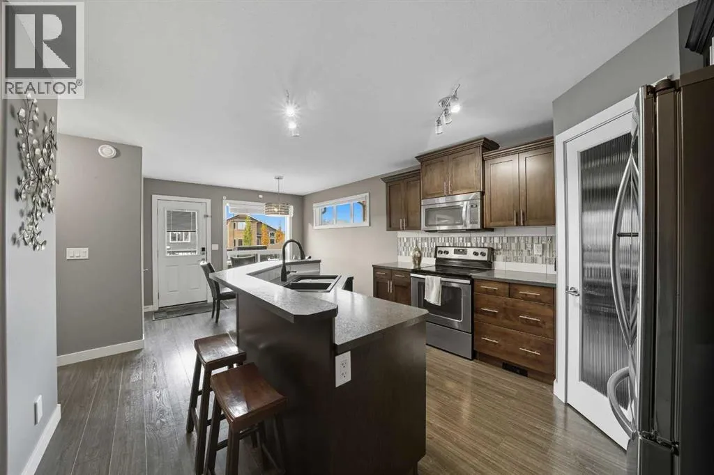 +"PublicRemarks": "Welcome to this fully finished bungalow with a double detached garage. Step into the front entry that opens to a welcoming living room with hardwood floors and views of the front yard. The floor plan flows into the dining area and kitchen, where you’ll find an eating bar, pantry, plenty of cabinet space, and easy access to the large back deck for summer BBQs. Down the hall, the primary bedroom offers dual closets, alongside two additional bedrooms, one with washer/dryer hookups in the closet and a 4-piece bathroom. The fully finished basement expands your living space with a spacious family room featuring a cozy gas fireplace, a fourth bedroom, a second 4-piece bathroom, and a large laundry/storage room. Enjoy your private, fully fenced backyard featuring a double detached garage, a convenient rear gate for RV parking, and even a removable dog run off the deck, perfect for pets or flexible yard use. This 4-bed, 2-bath bungalow is move-in ready and offers everything your family needs in a great location. (id:62650)"
