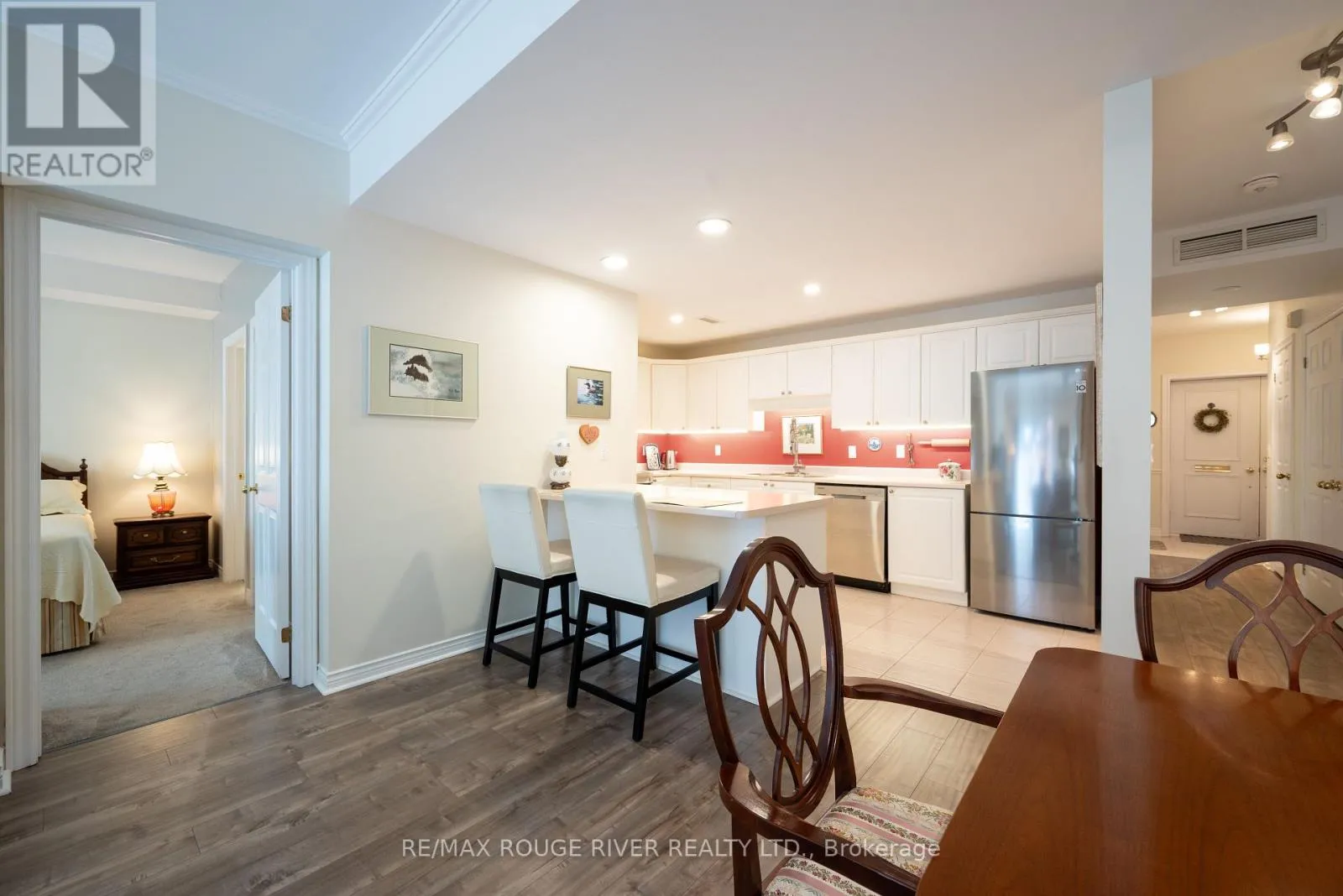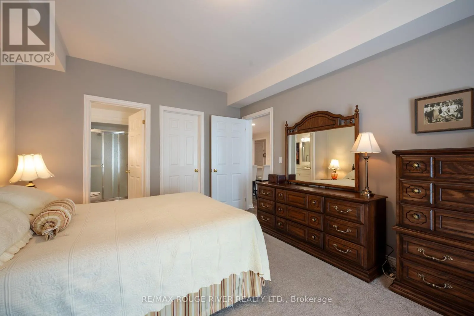 +"PublicRemarks": "Perfectly positioned just steps from Cobourg's picturesque harbour, this stylish 2-bedroom, 2-bath condo offers the ease of single-level living in one of the towns most desirable locations. The open-concept layout with 9-foot ceilings combines a modern kitchen complete with stainless appliances, breakfast bar, and ample storage with a bright living and dining area anchored by a cozy gas fireplace. The spacious primary suite features a walk-in closet and ensuite, while the second bedroom and full guest bath provide flexibility for visitors or a home office. Enjoy private outdoor living on the south-facing terrace ideal for dining, relaxing, or light gardening complete with gazebo. With a new furnace and air conditioning (2024), and a rare attached garage, this move-in-ready condo offers low-maintenance comfort for retirees, downsizers, or investors seeking a prime Cobourg address near shops, parks, and the waterfront. (id:62650)"