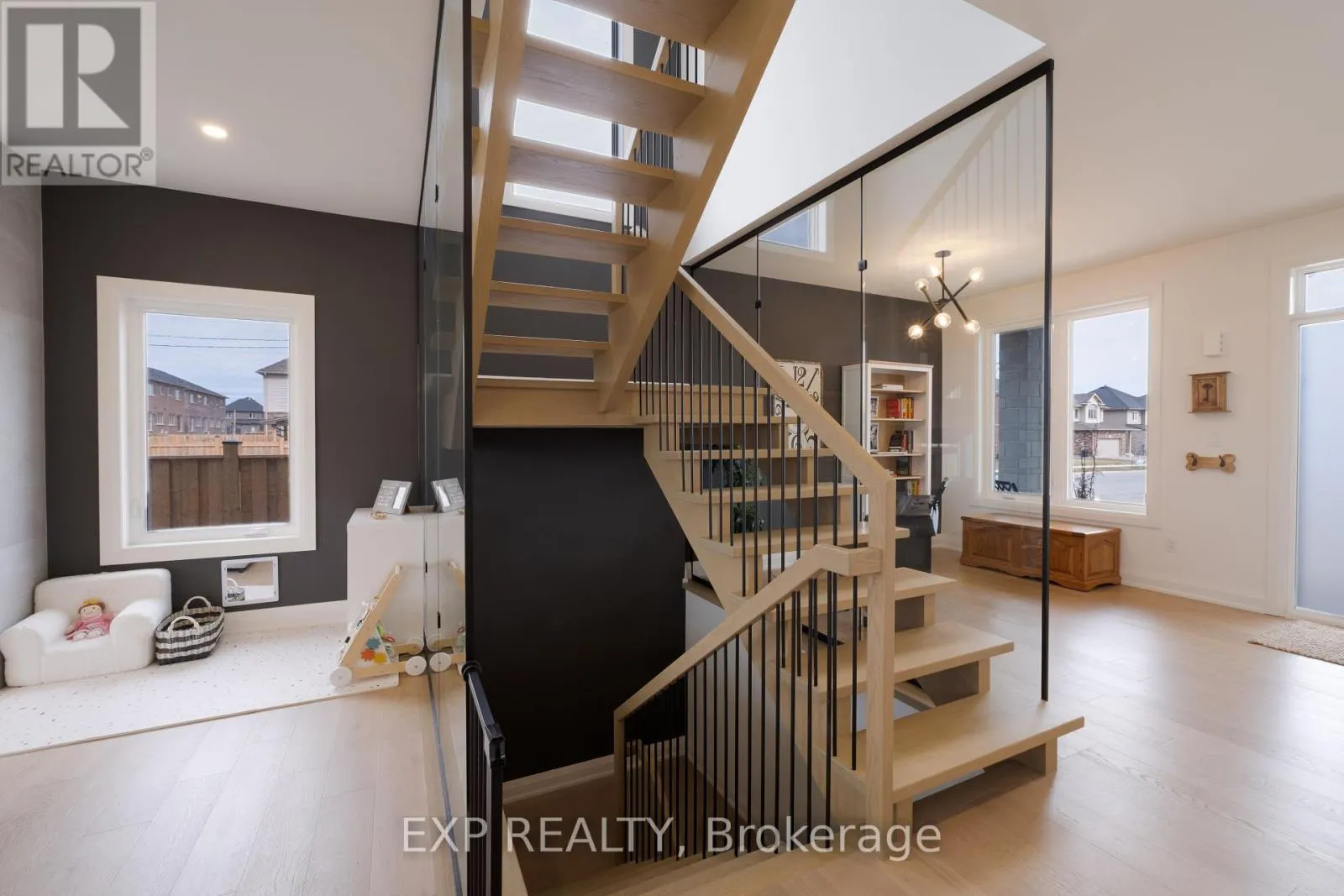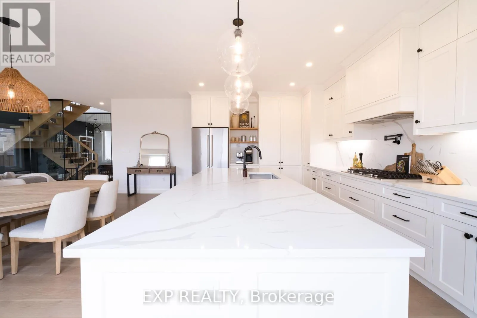 +"PublicRemarks": "Modern Luxury Meets Ravine Living! Set on a premium 50 ft ravine lot with breathtaking sunset views, this architecturally striking 2-storey home delivers style, space, and sophistication. From the moment you arrive, the bold, modern exterior makes an unforgettable impression, while inside, designer finishes and thoughtful upgrades create a home that's as functional as it is beautiful. Step through double doors to a bright, open main floor with 9 ceilings, solid 8 doors, and 24x24 porcelain tile. Engineered hardwood flows through the dining and living spaces, anchored by a sleek gas fireplace and oversized windows framing the natural views. Triple French doors lead to a spacious deck with gas BBQ hookup perfect for entertaining. The chefs kitchen is a showstopper, with custom cabinetry, gold hardware, soft-close drawers, glass accents, and premium built-in Dacor appliances including a 30 column fridge, 24 freezer, glass cooktop, and combo oven/microwave. Upstairs, an oak staircase with wrought iron details leads to generous bedrooms. The primary retreat offers a spa-inspired ensuite with double sinks, a freestanding tub, and a frameless glass shower. Additional bedrooms share a stylish Jack & Jill bath, also finished with glass and floating vanities. The walkout basement is ready for your vision featuring oversized windows, triple French doors, laundry hook-up, rough-in bath, and a separate side entrance, perfect for an in-law suite, office, or income potential. Extras: Nest thermostat, motorized blinds, upgraded lighting, central vac, humidifier, A/C, garage access with mudroom and walk-in pantry, garage opener, and EV charger rough-in. This home blends modern elegance with everyday comfort designed for those who want more. (id:62650)"