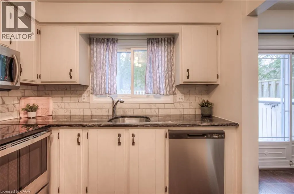 +"PublicRemarks": "Don't miss this rare find! A great townhouse condo — at one of the best prices in the area! Being an end unit makes it more private, almost like living in a semidetached home. Perfect for families. 3+1 bedrooms and 2 full bathrooms. Ideal for commuters, just 8 minutes from 401 and only minutes from Conestoga College (Kitchener Campus). The kitchen feels bright and modern with plenty of natural light, stainless steel appliances, and granite countertops. Freshly painted throughout, this home also offers a spacious primary bedroom with walk-in closet. If your teenager spends extra time in the bathroom, no worries, there are two full bathrooms! The large, open rec room features big windows and brand new flooring, while the basement has one of the full bathroom, making it perfect for a mortgage helper or guest suite. The rec room can be used as bedroom. Enjoy outdoor living with a private (id:62650)"