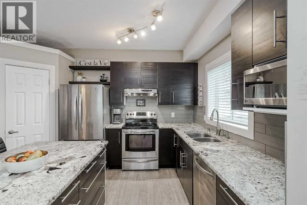 +"PublicRemarks": "Welcome to Wolf Willow, where nature, community & modern living come together in perfect harmony! Start your cooler mornings with Starbucks (6 min) coffee on your WEST-Facing TOP FLOOR balcony of this stunning 2 bedroom, 2 bath plus DEN home! You will love the sophisticated design & thoughtful details that make life easy while living in style. Built by Truman, this upper suite offers a bright OPEN CONCEPT living space with high ceilings, luxury VINYL PLANK FLOORS & sleek white QUARTZ COUNTERS throughout. The kitchen is the heart of the home with SOFT-CLOSE WHITE CABINETRY, stainless steel appliances, a double sink & a built-in floor-to-ceiling PANTRY offering daily practical & functional living. Pull up a stool & host some friends for wine & cheese nights at your extended QUARTZ BREAKFAST BAR while dinner sizzles. This layout flows effortlessly into your living area & onto your WEST balcony retreat, perfect for unwinding at sunset. The primary bedroom features a large WALK-THROUGH CLOSET & private 3pc ENSUITE, while the second bedroom & full bath make hosting guests feel welcomed to stay a little longer. Work from home in a good size den that easily fits an L-shaped office desk or simply use it as extra IN-UNIT STORAGE space! Everyday convenience just got better with full-size INSUITE LAUNDRY, UNDERGROUND PARKING & same-floor assigned STORAGE LOCKER just steps away from the unit door. This new southeast family-friendly community is growing fast & designed for nature lovers! Picture this: grab your leash & head to Woof Willow OFF-LEASH park, enjoy your morning jog at the Bow River walking trails, spend the day at Golf & end the night with a family bike ride at Fish Creek Provincial Park, all right here in Wolf Willow! Exciting news for families are 7 ANIMAL-THEMED PLAYGROUNDS including Wolf-Themed & Osprey Bird-Themed parks that are already open. Coming soon: WOLF PARK featuring an outdoor fitness, parkour, basketball, pickleball courts & amphitheatre for events. Nea rby schools are covered with Public & Catholic (K-12) within 9-12 min, Christian Academy (13 min), Private IB School (18 min) & the new Francophone School (French K-12) (11 min) while 2 future schools (K-12) are planned right in the heart of Wolf Willow! You’re 5 min to Stoney Trail & Macleod Trail, 13 min to LRT station & just steps to a bus stop for an easy commute. Everyday errands are a breeze with Sobeys & Save-On-Foods (6 min), Walmart (11 min) & Costco (14 min). Stay active with Big Sky Fitness (6 min), Anytime Fitness (9 min) or SoCal Bouldering (11 min). Weekends call for Spruce Meadows (14 min) concerts & events, movies at Landmark Cinemas (10 min), or a sunny day at Sikome Lake (8 min). Pet lovers will love having Legacy Vet (7 min) & VCA Animal Hospital (10 min) nearby. Run a quick errand just steps away at 194 Ave plaza with a new gas station, preschool, pharmacy, food, barber, dental & dance all within arms reach! Wolf Willow is where the fun adventure begins! Book a private viewing today! (id:62650)"