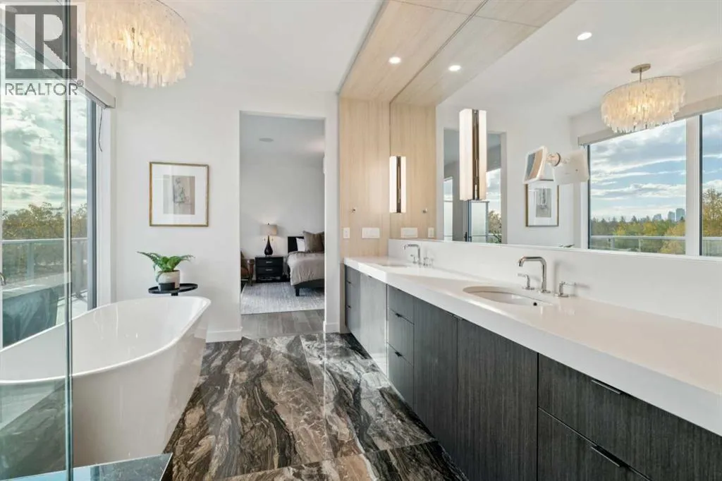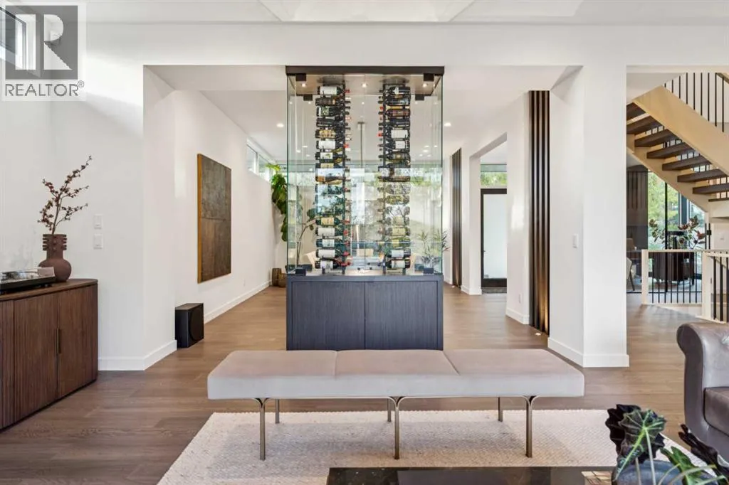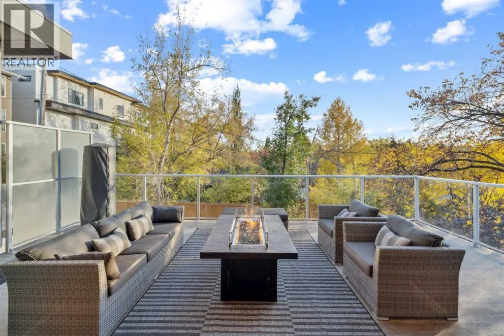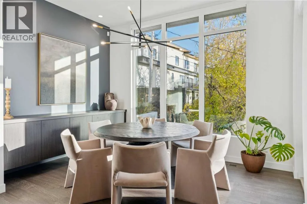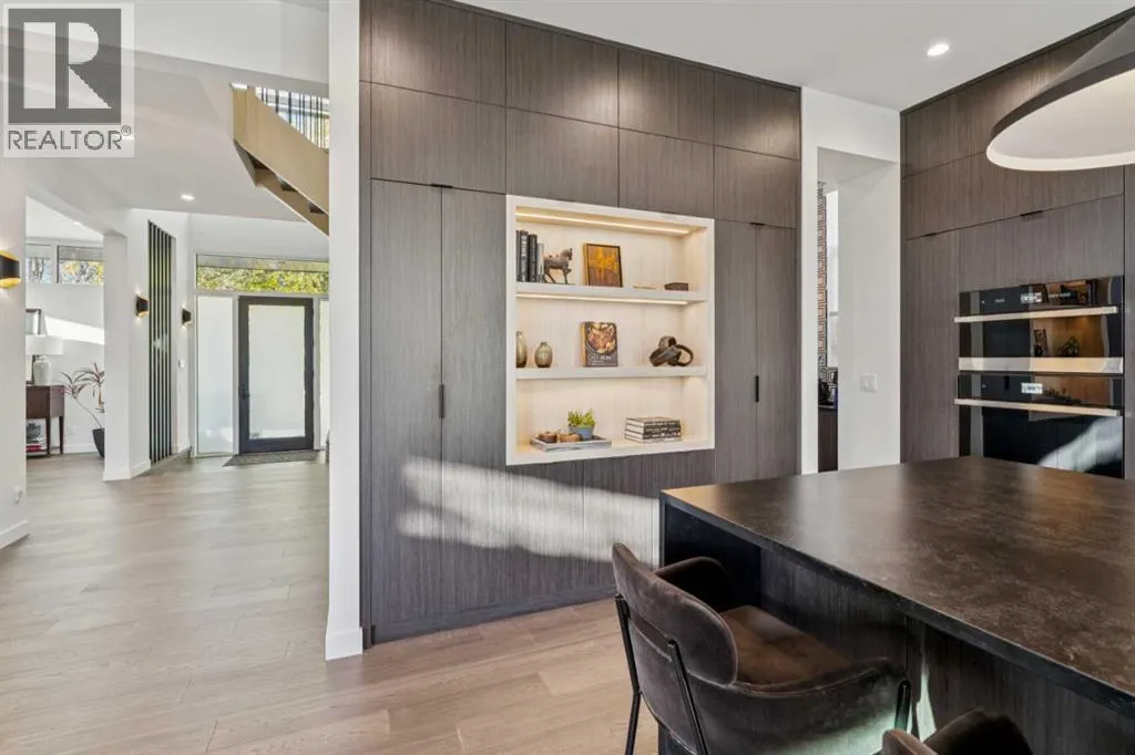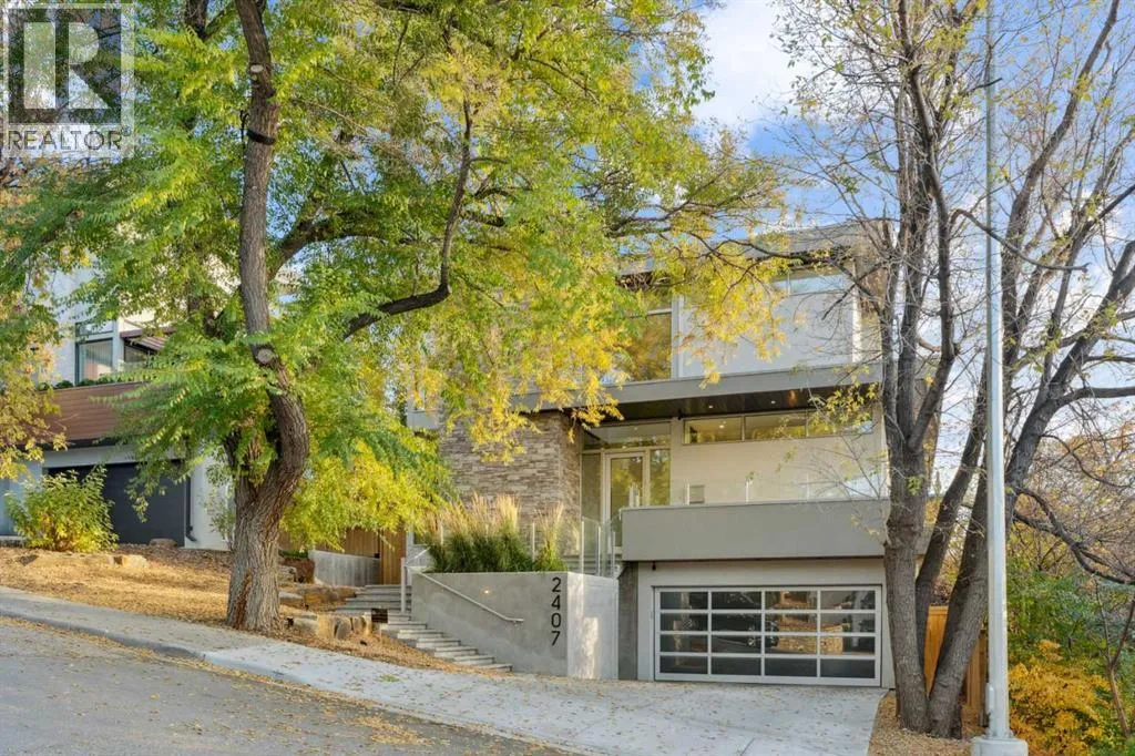 +"PublicRemarks": "Tucked away in an exclusive enclave just moments from Kensington and the downtown core, this modern architectural residence offers refined living in a truly exceptional setting. Designed for both comfort and sophistication, the home combines thoughtful design, superior craftsmanship, and cutting-edge systems throughout. Built to the highest standards, it features triple-pane windows, 2-zone hydronic in-floor heating in the basement, finished triple garage with floor drains, and a dual-zoned HVAC system. Extensive concrete retaining walls and planters frame the property, while Lutron lighting control, an 8-zone sound system with integrated ceiling and outdoor speakers, and 7.2 surround sound in the recreation room elevate the living experience. Porcelain tiles imported from Italy, Caesarstone countertops, and solid core interior doors reflect the quality that defines every detail. The main level showcases expansive open-concept living with 10-foot ceilings and floor-to-ceiling south-facing windows that flood the home with natural light. The kitchen is a true centrepiece—equipped with integrated JennAir appliances including a 48” gas range top, and a walk-in coffee bar/pantry with prep sink and wine fridge. A striking glass wine wall with floating racks separates the formal dining area, which comfortably hosts 12–14. The stone-clad fireplaces anchors the living room, while a glass-enclosed main floor den provides a serene workspace. Step outside to the 25’ x 16’ deck overlooking a secluded, landscaped south yard surrounded by mature trees. Upstairs, three spacious bedrooms each feature a private ensuite. The primary suite is a sanctuary with a spa-inspired 5-piece ensuite bathroom with heated floors, custom window coverings, an impressive 21-foot walk-in closet with extensive built-ins, and a private south-facing balcony offering sweeping and serene views of the Bow River Valley. A large, well-appointed laundry room completes the upper level. The walk-out basement inc ludes a guest suite with attached bath, a recreation room with gas fireplace and wet bar, and access to a covered patio and your oversized triple garage with heated floors. The home has security cameras, central vacuum, irrigation, EV charging, and hot tub hookup. Perfectly positioned for an active lifestyle, this residence is steps from the Bow River pathways, West Hillhurst tennis and pickle-ball courts, and offers quick access to 16th Avenue for effortless weekend escapes to the mountains. Minutes from top schools, hospitals, shopping, the C-train, and downtown Calgary—this is contemporary living at its most complete and luxurious. (id:62650)"