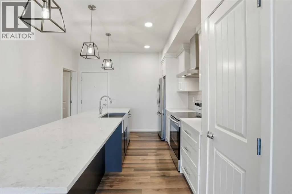 +"PublicRemarks": "Available for immediate possession! Don't miss your opportunity to own this BRIGHT, TOP FLOOR CONDO featuring stylish vinyl flooring, upgraded finishes, AC, and custom California Closets! The beautifully upgraded kitchen features quartz countertops, stainless steel appliances, large undermount farmhouse sink, full pantry, and an island with a UNIQUE 2-SIDED BREAKFAST BAR that offers table-style dining rare for this type of condo! The primary bedroom is complete with a customized walk-in closet! A full bath serves the primary bedroom and guests. You’ll love the extra storage space and custom shelving in the spacious laundry room! This unit comes with 2 titled parking spaces (one underground, one above ground stall) and a convenient assigned storage locker. Just steps to many community parks, ponds, tennis courts, and playgrounds, and a short drive to The Golf Centre at Harvest Hills. This great location will have you driving just 10 minutes to the Calgary Airport, 20 minutes to downtown, and 5 minutes to the Stoney Trail ring road. (id:62650)"