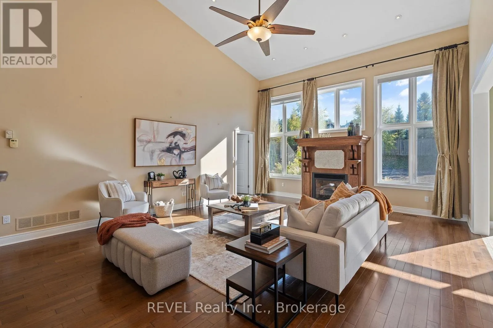 +"PublicRemarks": "Nestled in one of Niagara's most prestigious neighbourhoods, Calaguiro Estates in North-End Niagara Falls, 6718 Domenic Crescent offers an extraordinary residence on a 100 x 193 ft estate-sized lot. With approximately 3,000 sq.ft. of above-grade living space, this custom-built home is designed with sophistication and comfort in mind. The main floor impresses with 20-ft soaring vaulted ceilings, a fireplace, and an open-concept layout that perfectly blends elegance and function. The custom kitchen features granite countertops and ample cabinetry, flowing seamlessly into the bright living and dining areas filled with natural light. The main floor primary suite offers a 5-piece ensuite and walk-in closet, while main floor laundry and a dedicated office add everyday convenience. Upstairs, the open-concept family room overlooks the main level, enhancing the homes spacious, connected feel.The basement features a finished bedroom and a 5-piece bathroom, with plenty of additional space to complete another bedroom, a workout room, and a recreation area. It also offers a walk-up to the backyard. Outside, the expansive, fully fenced yard lined with mature cedars provides exceptional privacy and the potential to create your dream resort-like retreat. Ideally located near the QEW, top schools, and all North-End Niagara Falls amenities, this stunning property embodies luxury living in one of Niagara's most coveted communities. (id:62650)"