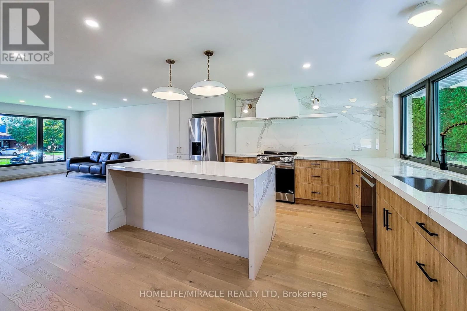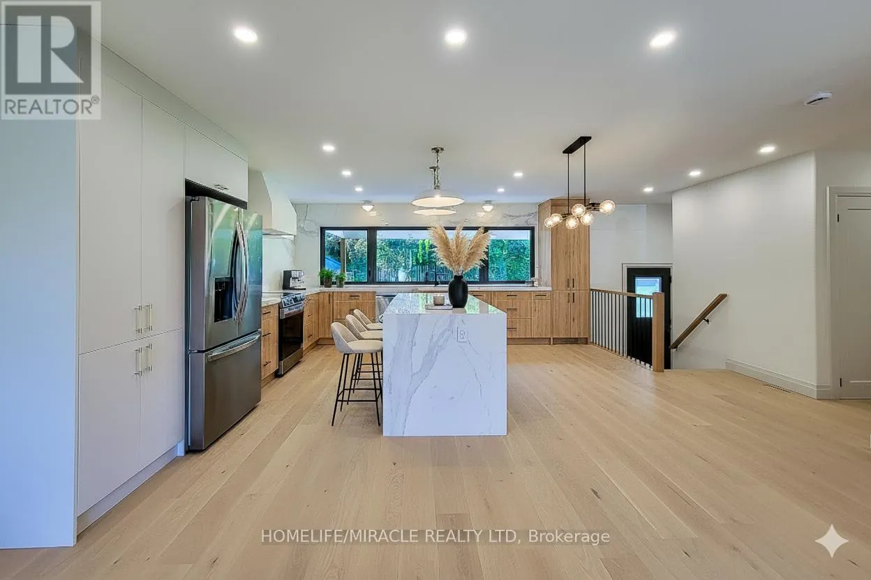 +"PublicRemarks": "This immaculate 3-bedroom, 2-bath bungalow has been completely renovated, offering 1,255 sq. ft. of modern, carpet-free living. The open-concept main floor features bright, spacious living and dining areas with gleaming hardwood floors and oversized windows that fill the space with natural light. The stylish eat-in kitchen is perfect for any home chef, featuring stainless steel appliances, a tiled backsplash, generous cabinetry, and an island with a breakfast bar for casual dining. The contemporary 3-piece main bathroom showcases elegant finishes, while the primary suite includes custom built-in wardrobes and a spa-inspired 3-piece ensuite with a walk-in shower. The full, unfinished basement provides endless potential whether for additional living space or an in-law suite with a separate entrance already in place. Step outside to enjoy the private, covered concrete patio and low-maintenance backyard, perfect for relaxing or entertaining. Situated in a quiet, family-friendly neighborhood, this home is within walking distance to schools, parks, and the GO Station, with quick access to the mountain and QEW. With 200 amp service and exceptional upgrades throughout, this home is truly move-in ready a must-see! (id:62650)"