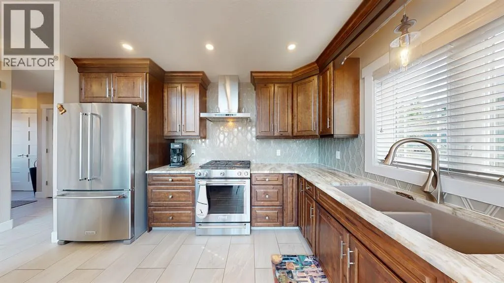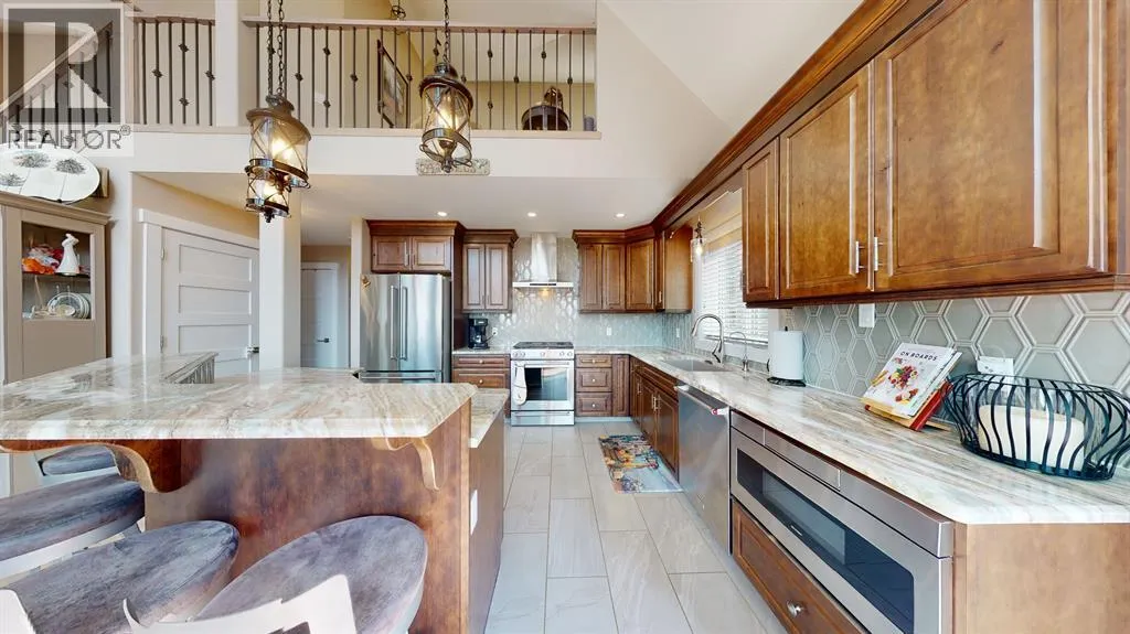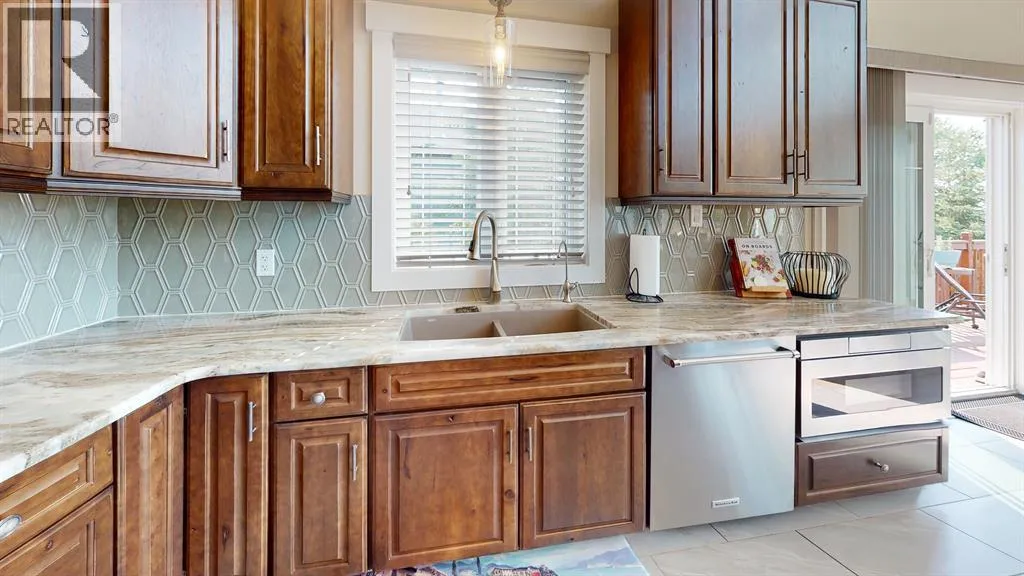 is the custom kitchen that boasts large island, apron front sink and built in appliances. The vaulted ceilings and wall to wall windows bathe the main floor in natural light and allow you to enjoy the serene setting all around you. The primary suite is a true oasis, featuring a large 4 piece ensuite with a luxurious soaker tub, a walk-in shower, stone countertops and a walk-in closet. There are 3 additional bedrooms on the main floor and one in the fully finished walk out basement, providing plenty of room for family and guests. Outside you will find an attached and heated triple car garage, ample parking for guests and recreational vehicles, raised bed gardens and armour stone accents. BBQ on the covered back deck or enjoy the morning sunshine on the covered front porch. Easy access to Buckhorn Lake. (id:62650)