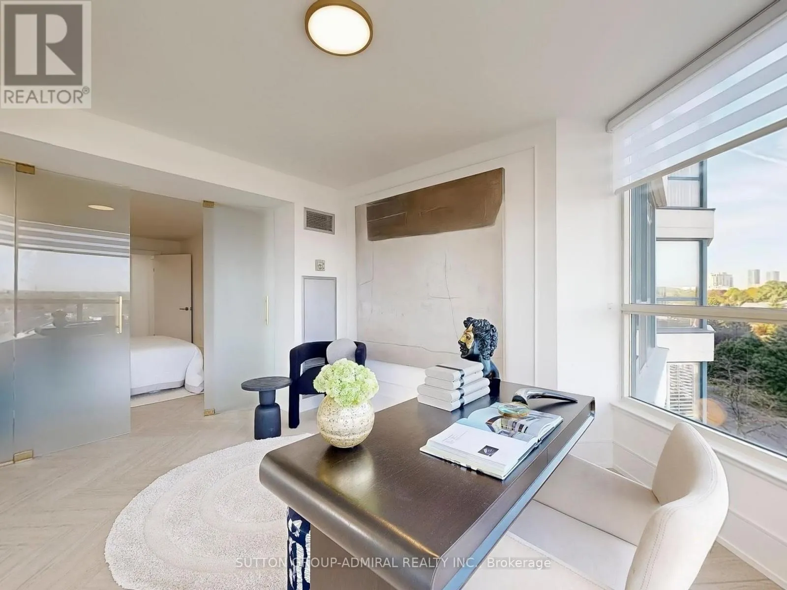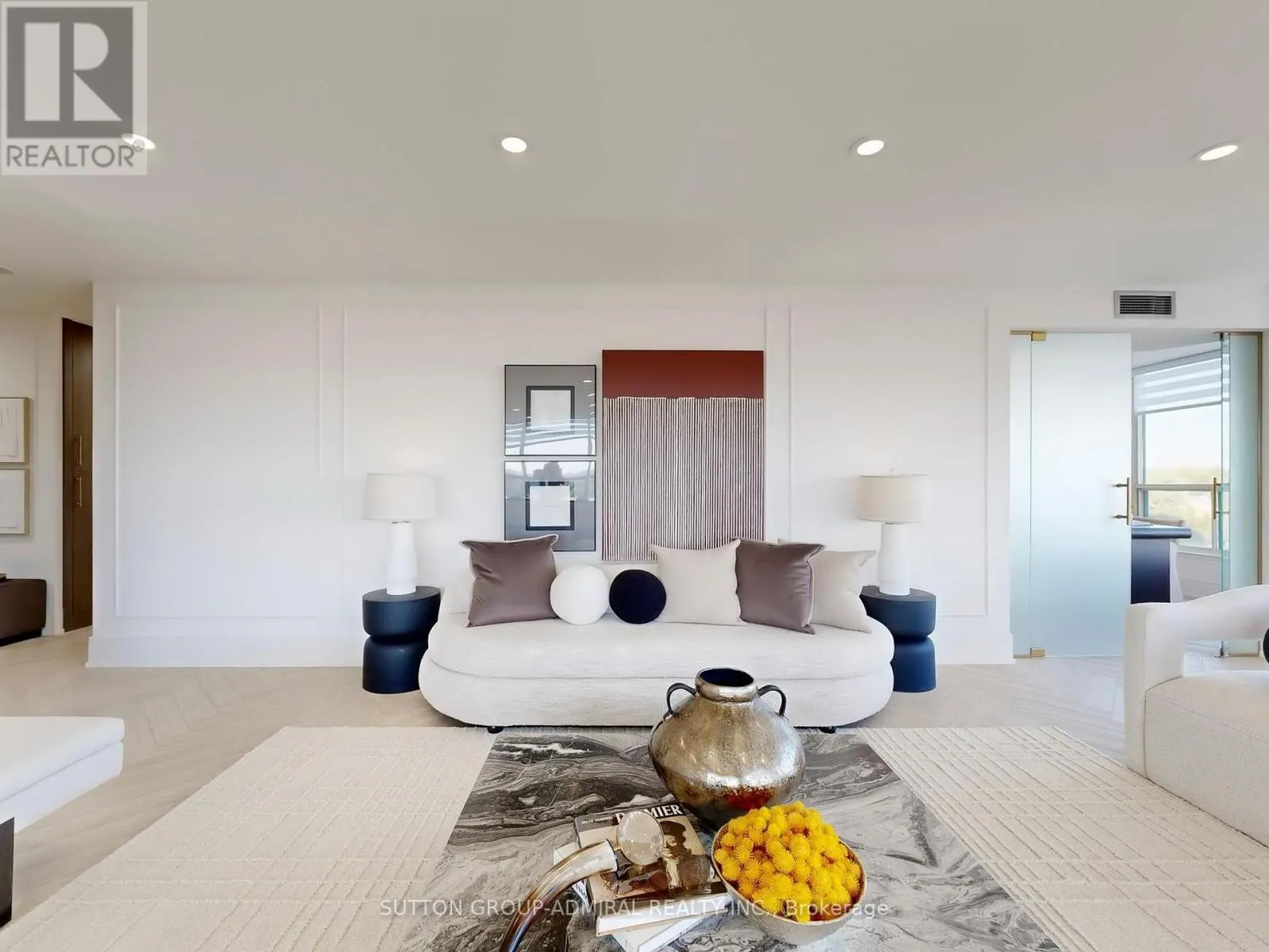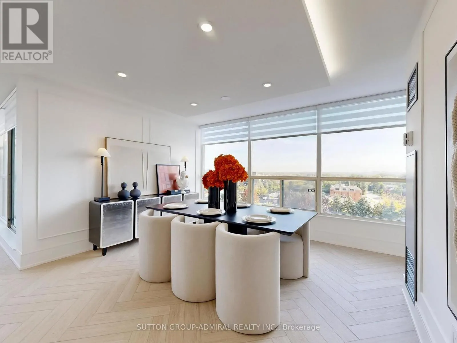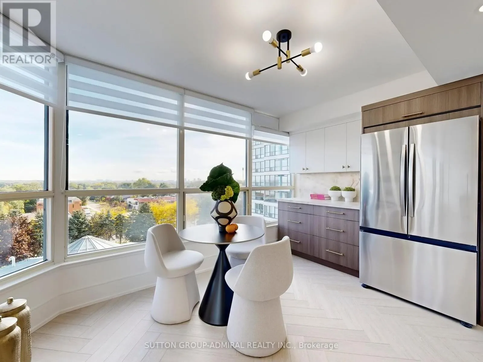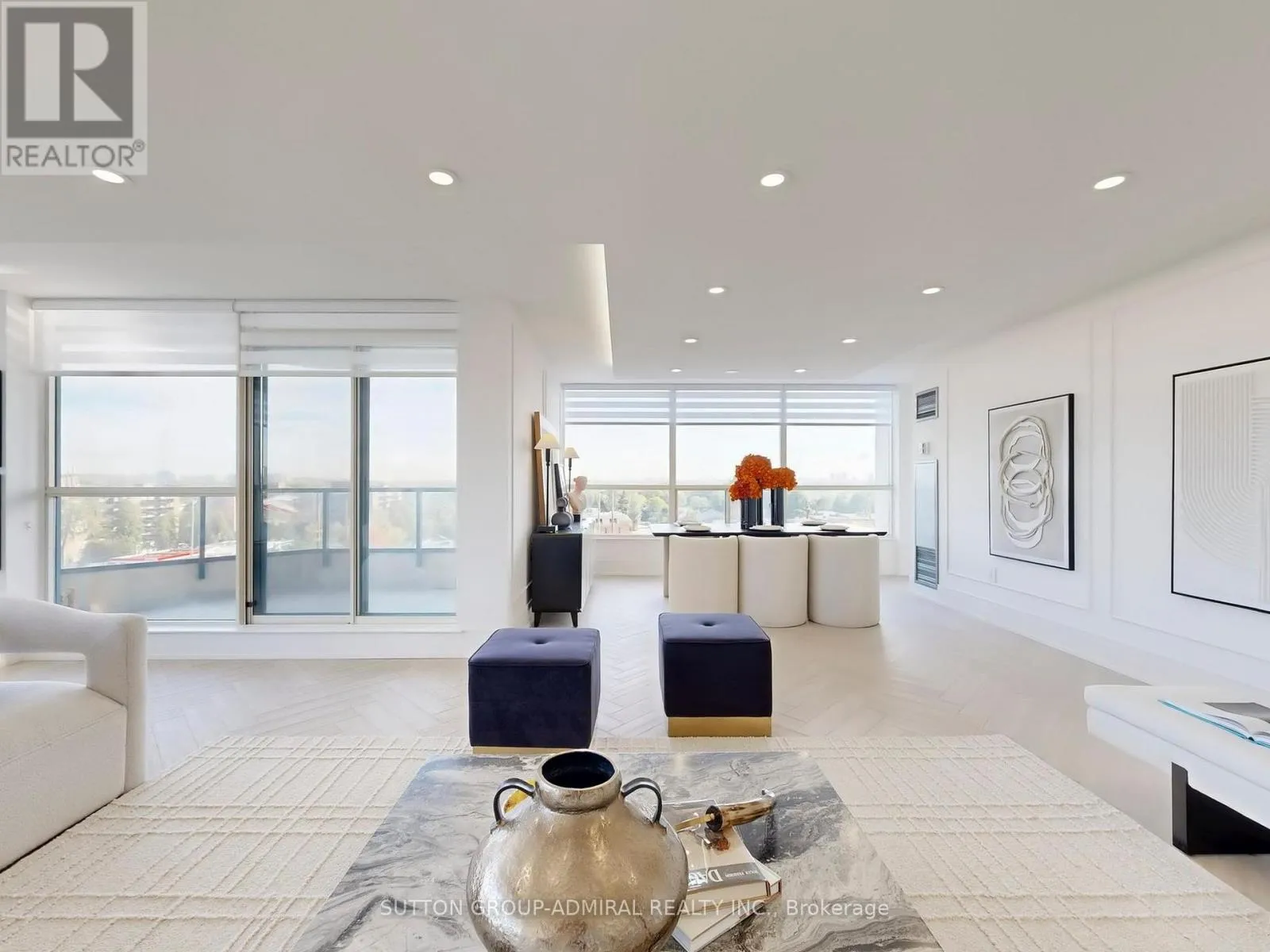 Finishes, Elegant herringbone vinyl flooring, sophisticated wood paneling, and Italian porcelain tile in washrooms. Open-Concept Oversized living and dining area perfect for entertaining Gourmet Kitchen, Modern design featuring porcelain countertops, matching backsplash, and brand-new stainless steel appliances. Master Suite, Generously sized with custom walk-in closet and spa-inspired ensuite bathroom, Built-in closets and additional locker room for maximum organization. Design Elements Large windows with stylish zebra blinds maximize natural light Smooth illuminated floating ceilings with pot lighting create elegant ambiance, Private balcony for outdoor relaxation, Every detail carefully curated with top-quality materials and finishes, Building Amenities Concierge Services: 24-hour front desk support, Recreation, Indoor pool, spa facilities, and fully equipped fitness center, Dedicated party and game rooms for residents, Newly renovated lobby and elevator systems Convenience: 2 parking spaces included Why This Property Stands Out This meticulously renovated home represents a rare find in today’s market combining premium location, luxury finishes, and exceptional building amenities. The thoughtful design maximizes both space and natural light, creating an inviting atmosphere perfect for modern living. Perfectly located with top-rated schools, parks, shopping, and community amenities nearby. Schedule your private viewing today to experience this exceptional property firsthand. (id:62650)