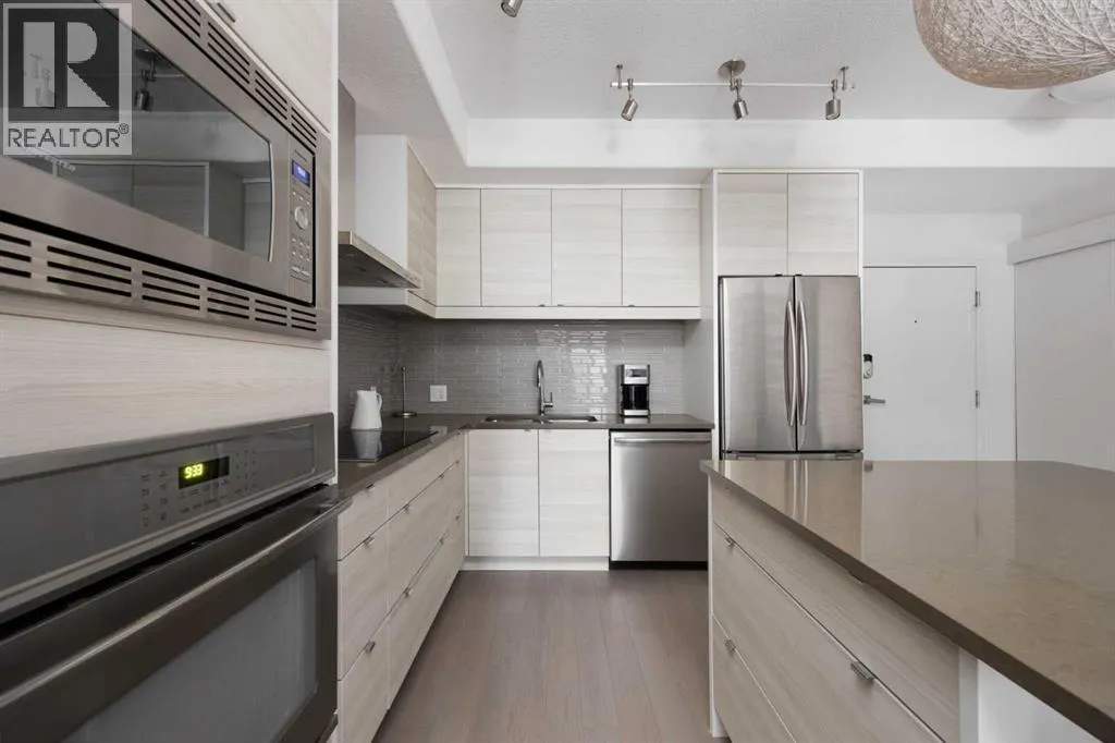 +"PublicRemarks": "This condo doesn’t whisper luxury. It purrs it.Step inside and feel it right away. The soft light. The clean lines. The calm that comes from knowing everything is fresh, modern and easy to love. With 847 square feet of smart space, this two bedroom, two bathroom home gives you style without the fuss.The sleek kitchen is the heart of it all. Smooth quartz counters, a large island with seating, and stainless appliances make cooking (or take-out plating) a breeze. It’s open to the cozy living room so you can chat, laugh and relax without missing a thing.Slide open the door to your balcony and let the view of the river steal the show. It’s peaceful up here. You can sip your morning coffee or watch the sunset and feel far from the noise, even though you’re right in the heart of downtown.The primary bedroom feels like a calm retreat. European style closets keep everything neat and organized, and the ensuite is pure comfort with heated floors and a steam shower. The second bedroom and full three-piece bath give space for guests, a home office or both.In-suite laundry keeps life simple, and the storage room means you actually have a spot for everything. There’s secure underground parking so winter mornings don’t start with scraping windshields. The building is quiet and well kept, close to shopping, coffee spots and all the best parts of downtown living.Living here solves a few problems you didn’t even know you had. No more yard work. No more driving across town for what you need. No more trading comfort for convenience. This home gives you both. The $630.45 condo fees includes cable, internet and heat.Close to schools, parks, shops and transit, it’s an easy fit for professionals who want to be near the action but still come home to peace and a great view.Check out the detailed floor plans where you can see every sink and shower in the home, 360 tour and video. Are you ready to say yes to this address? (id:62650)"