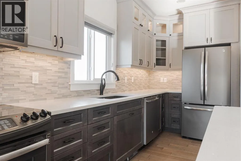 +"PublicRemarks": "READY FOR IMMEDIATE OCCUPANCY BRAND NEW KITCHEN APPLIANCES, BRAND NEW KITCHEN COUNTER TOPS! FULLY UPGRADED TOWNHOME BUILT IN 2017, FINISHED WITH QUARTZ COUNTERTOPS AND LUXURY VINYL PLANK, 3 BEDROOMS, 2 BATHS, INSUITE LAUNDRY, AND A MASSIVE FRONT DECK. Situated in the heart of Abasand, next to walking trails, schools, parks, and minutes from the downtown core. This 2-storey townhome stands out from the rest with its oversized front concrete deck. Step inside this modern townhome with a spacious front living room offering loads of space for your family room and additional space for a children's play space or office. This level continues with a galley kitchen with bright white cabinetry, butcher block look countertops, and brand new stainless steel appliances. The main level is complete with a 2-piece bathroom and laundry room. The upper level is complete with 3 bedrooms offering ample space, large windows, and a 4 pc bathroom. In addition, the upper level offers a large storage room. An additional feature is one underground parking stall. This home has also just had a professional move out clean done which included steam cleaning of carpets. Condo fees include heat, water, building insurance, garage, sewer, and common area maintenance. Call today for your personal tour. (id:62650)"