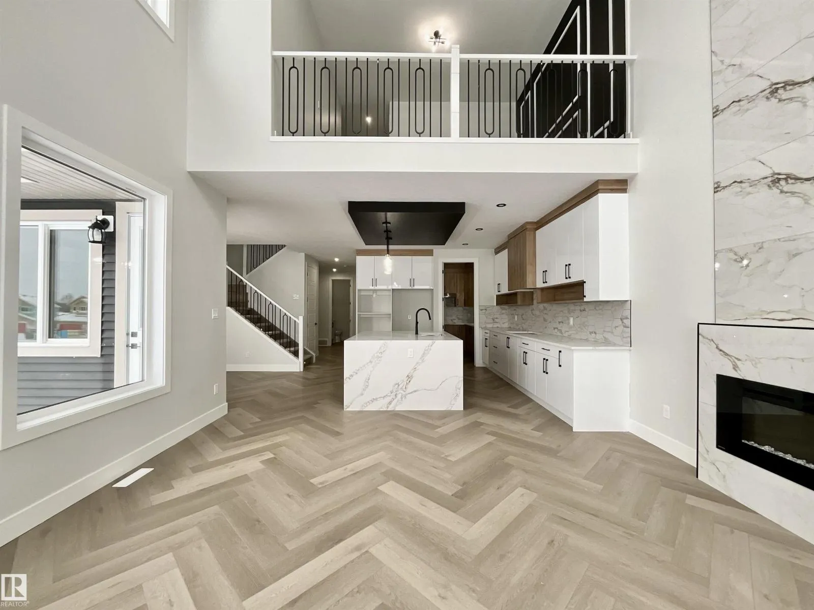 +"PublicRemarks": "This stunning WALKOUT 2 Storey is sure to impress, sitting on a large pie lot backing walking trail & trees & loaded with upgrades including A/C, 4 bedrooms, 3.5 baths & a 30x34' heated triple garage, 240V power & a 10’ RV bay door w drive-thru door at back. A grand entrance welcomes you into the open-concept main floor with soaring ceilings. Chef’s kitchen boasts modern cabinetry, massive pantry, gas stove with pot filler, & a quartz island overlooking the dining area. The living room features open to above ceilings & a sleek electric fireplace + spacious 2pc guest bath. Upstairs, retreat to the king-sized primary suite with a California walk-in closet & spa-like ensuite with a huge walk-in shower. Two more spacious bedrooms, a 4pc bath, & upper laundry complete the level. The fully finished walkout basement offers 9’ ceilings, a large rec room, 4th bedroom, & another full bath. Enjoy the fenced & landscaped SW yard with a putting green, epoxy patio, & maintenance-free deck! This home is better than new! (id:62783)"